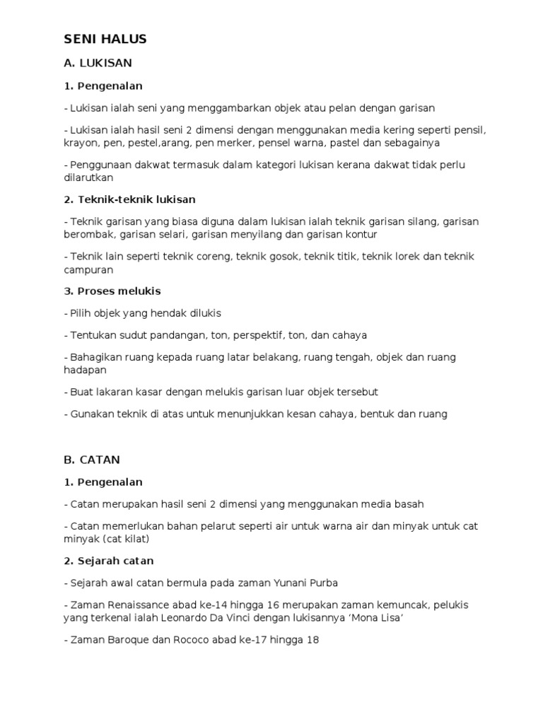 Seni catan nota ringkas inslide tingkatan 2. Merupakan karya seni rupa yang diambil pada motif florafaunageometri awan larat. Media Seni Rupa RPP 1 Kls XI Smt 1 MARMOSM. HURAIAN SUKATAN PELAJARAN PENDIDIKAN SENI VISUAL KBSM Tingkatan 2 Bil BidangUnit Pembelajaran Hasil Pembelajaran Cadangan Aktiviti Pembelajaran 1 Penghasilan Seni Visual 11 Asas Seni Reka diaplikasikan secara bersepadu dalam penghasilan Seni Visual 12 Seni Halus a.